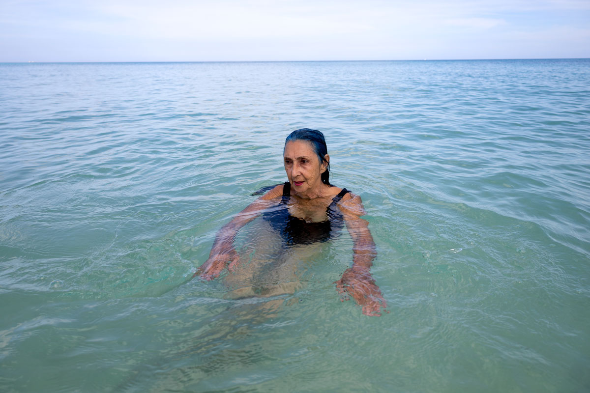Clementina marks her birthday by dyeing her hair blue and swimming in the ocean for the first time in 30 years, November 2022. Digital print. Courtesy of the artist, Elegoa Cultural Productions, Birch Contemporary, and Pierre-François Ouellette Art Contemporain.